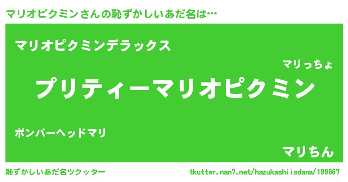 | ヘコむあだ名 | 『マリにゅー』『マリオピクミン(震え声)』 |