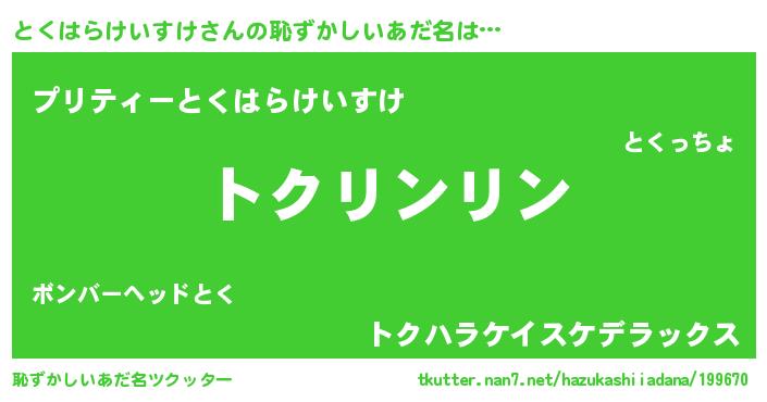 | ヘコむあだ名 | 『とく太郎』『とくっふぃ~』 |