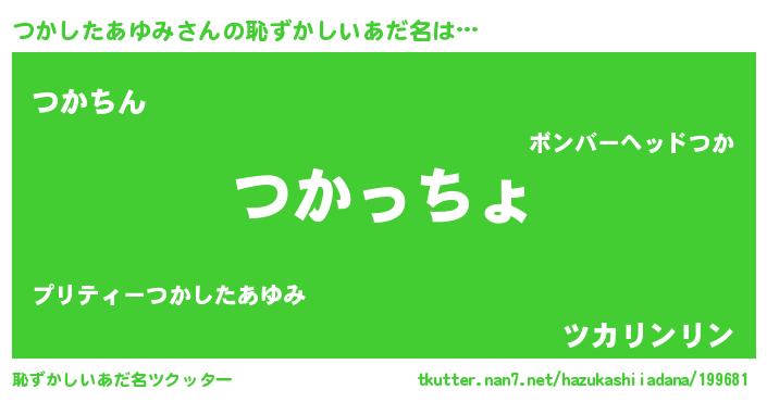 | ヒーロー風カッコイイあだ名 | 『仮面ツカダー』『ネオツカシタアユミ』 |