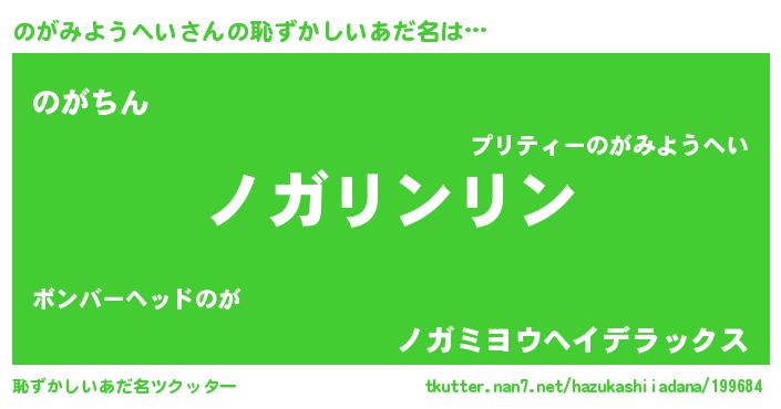 | ヘコむあだ名 | 『のがお』『のがみようへい(爆)』 |