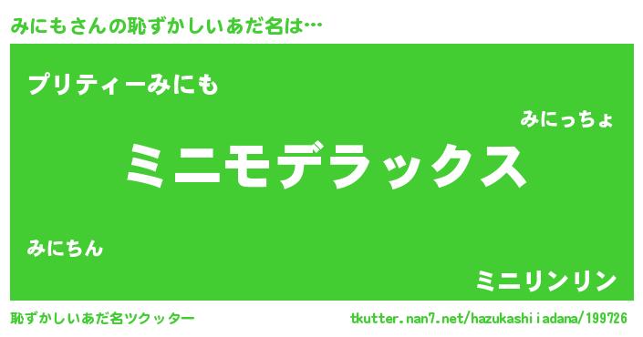 | 男性向けラノベタイトル風あだ名 | 『Re:みにもから始める異世界生活』 |