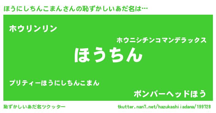 | 意味不明あだ名 | 『永久保存ほうにしちんこまん』 |