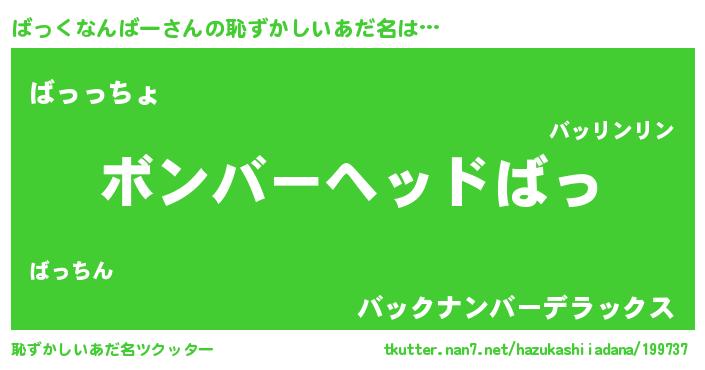 | 料理風あだ名 | 『ばっくなんばーのトマト煮』 |