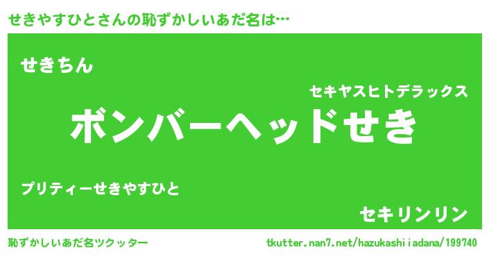 | ヘコむあだ名 | 『せきやすひと(苦笑)』『せき太郎』 |