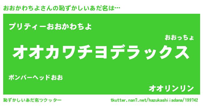 | 意味不明あだ名 | 『自称おおかわちよ』 |