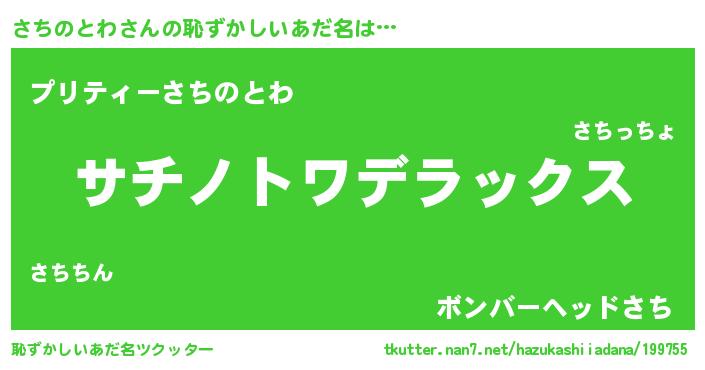 | ヒーロー風カッコイイあだ名 | 『最強戦士サチノトワ』『仮面サチダー』 |