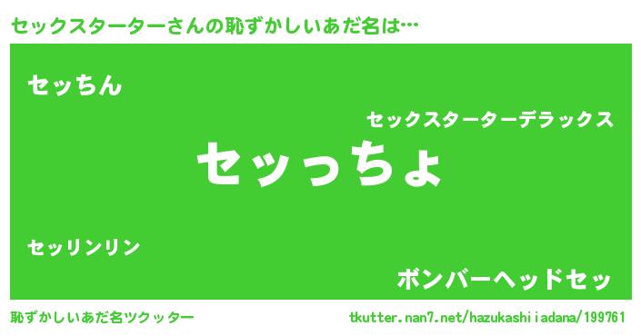 | 意味不明あだ名 | 『セックスターターフォーエバー』 |