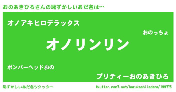 | 男性向けラノベタイトル風あだ名 | 『おのあきひろの嫁は女の子じゃないと思った?』 |