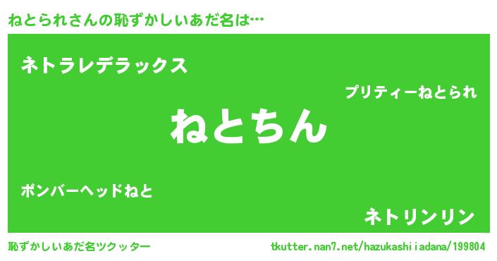 | 意味不明あだ名 | 『永久保存ねとられ』『自称ねとられ』 |