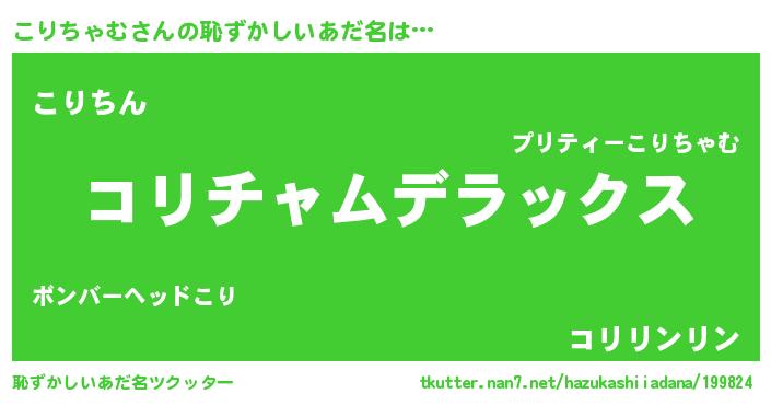 | 女子向けラノベタイトル風あだ名 | 『乙女ゲームの破滅フラグしかない悪役こりちゃむに転生してしまった…』 |