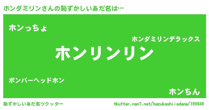 | 女子向けラノベタイトル風あだ名 | 『ホンダミリンは平凡を望む』 |