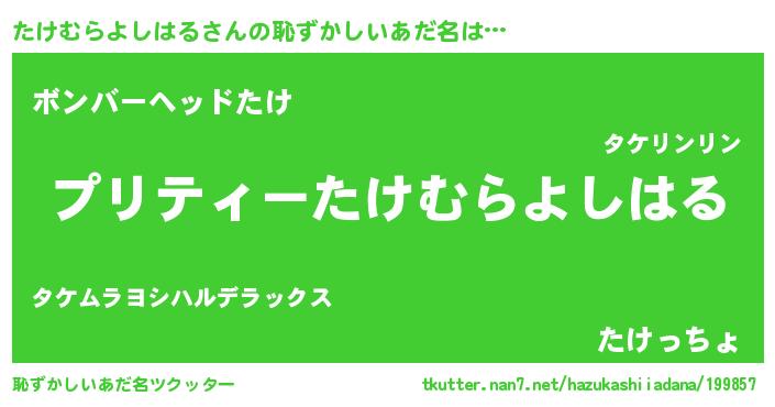 | ヘコむあだ名 | 『たけにゅー』『牛乳』『たけぷりん』 |