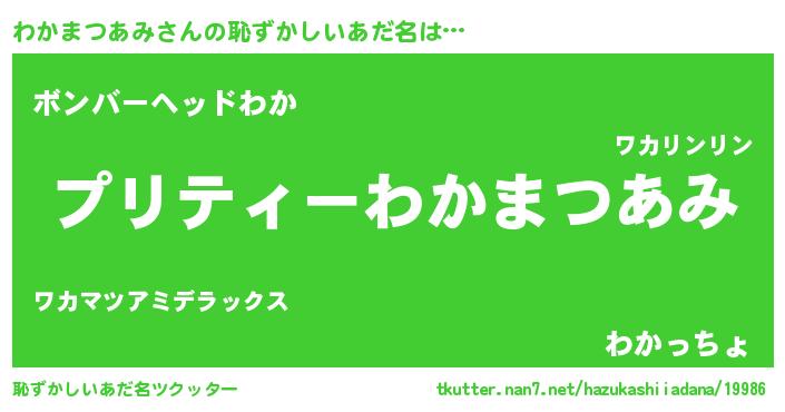 | 意味不明あだ名 | 『住所不定無職わかまつあみ(9歳)』 |