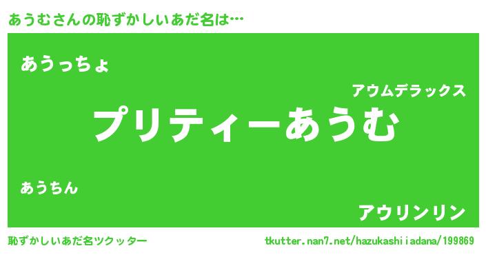 | 可愛いあだ名 | 『あんあん』『ぽよあう』『あうちー』 |