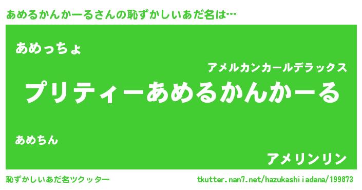 | 胡散臭い通販商品みたいなあだ名 | 『億万長者になれるブレスレット…その名も「あめるかんかーる」』 |