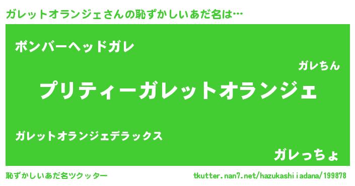 | 意味不明あだ名 | 『住所不定無職ガレットオランジェ(9歳)』 |