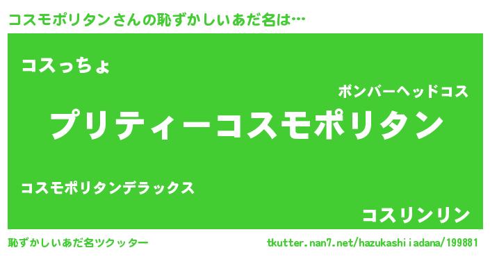 | 男性向けラノベタイトル風あだ名 | 『コスモポリタンの憂鬱』 |