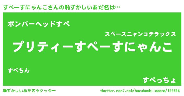 | 男性向けラノベタイトル風あだ名 | 『この素晴らしい世界にすぺーすにゃんこを!』 |