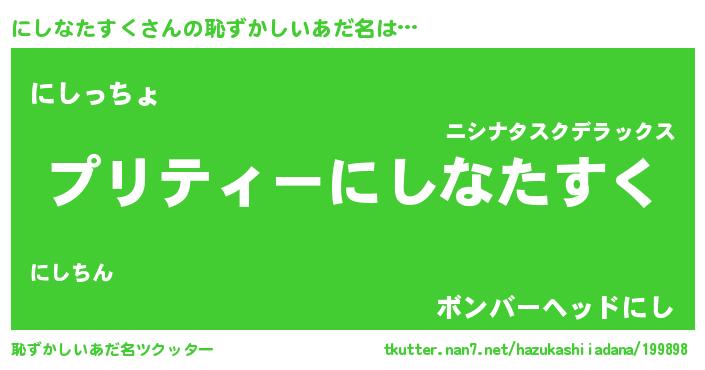 | ポケモン風あだ名 | 『ニシチュウ』『ニーシイ』 |