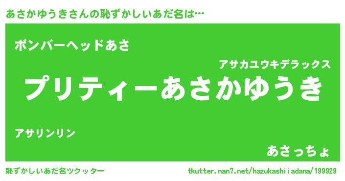 | ヒーロー風カッコイイあだ名 | 『スーパーアサカユウキ』『仮面アサダー』 |