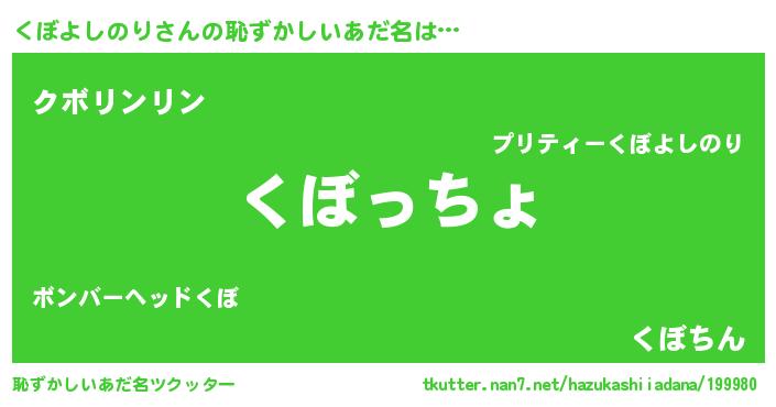 | 意味不明あだ名 | 『住所不定無職くぼよしのり(86歳)』 |