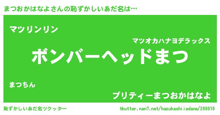 | 意味不明あだ名 | 『眠気覚ましガムまつおかはなよ味』 |