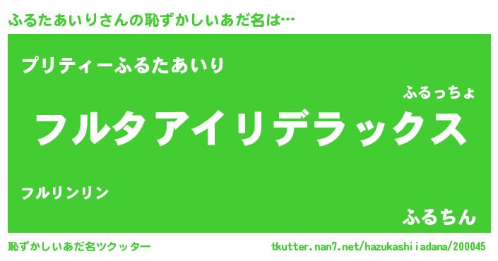 | ヘコむあだ名 | 『ふるもー』『ふるたあいり(笑)』 |