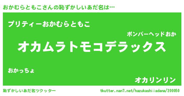 | 意味不明あだ名 | 『住所不定無職おかむらともこ(11歳)』 |
