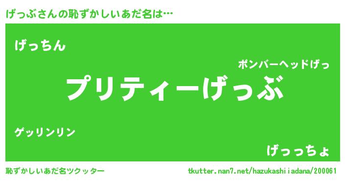 | ヘコむあだ名 | 『げっふぇ~』『げっぶ(小並感)』 |