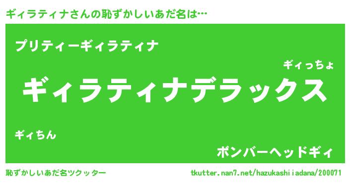| 伝説のあだ名 | 『封印されしスナイパーギィラティナ』 |