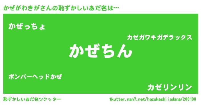 | ヒーロー風カッコイイあだ名 | 『ネオカゼガワキガ』『黄金騎士カゼ』 |