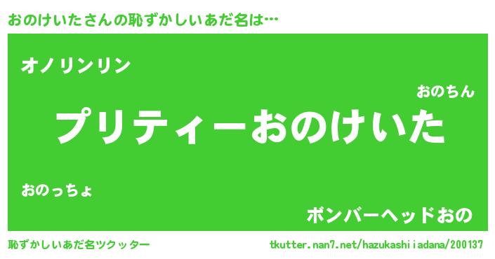 | 男性向けラノベタイトル風あだ名 | 『おのけいたの憂鬱』 |