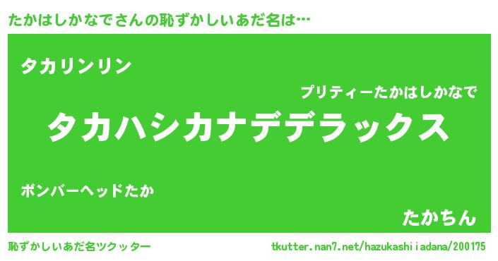 | 意味不明あだ名 | 『自称たかはしかなで』 |