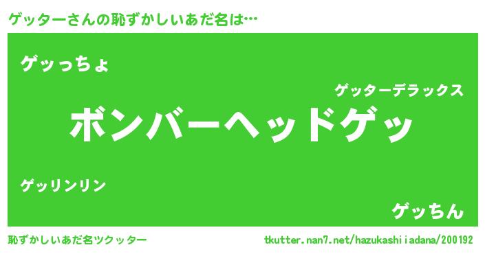 | ヘコむあだ名 | 『酢こんぶ』『ゲッター(爆)』 |