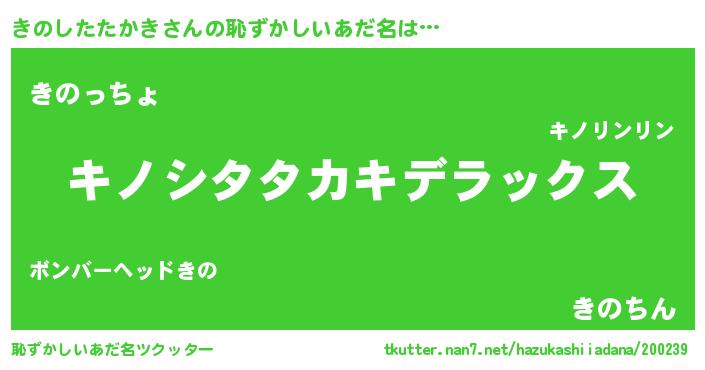 | 意味不明あだ名 | 『自称きのしたたかき』 |