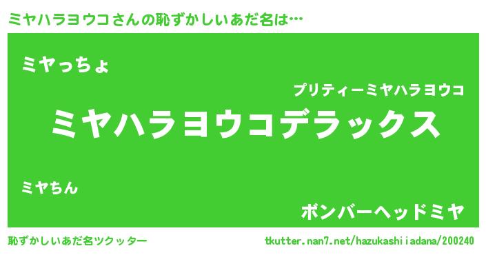 | 意味不明あだ名 | 『自称ミヤハラヨウコ』 |