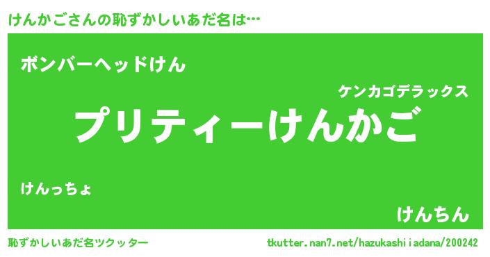 | ヘコむあだ名 | 『けんにー』『けんかご(震え声)』 |