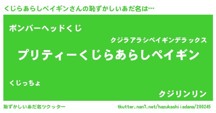 | ヒーロー風カッコイイあだ名 | 『スーパークジラアラシペイギン』 |