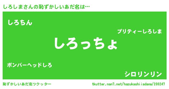 | ヒーロー風カッコイイあだ名 | 『仮面シロダー』『ウルトラしろしまマン』 |