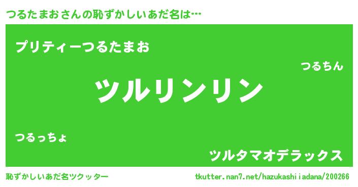 | 意味不明あだ名 | 『住所不定無職つるたまお(1歳)』 |