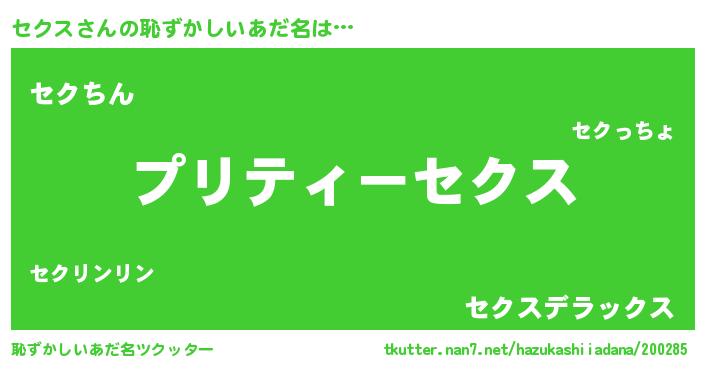 | ヘコむあだ名 | 『セクふぇ~』『セクス(遠い目)』 |