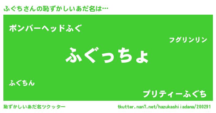 | ヘコむあだ名 | 『酢こんぶ』『ふぐにゅー』『ふぐお』 |