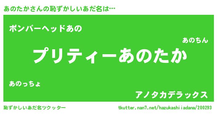 | ヘコむあだ名 | 『あのにー』『あのたか(震え声)』 |