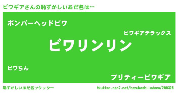 | ヒーロー風カッコイイあだ名 | 『暗黒騎士ビワ』『友情の使者ビワギア』 |