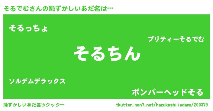 | ヒーロー風カッコイイあだ名 | 『ネオソルデム』『ウルトラそるでむマン』 |