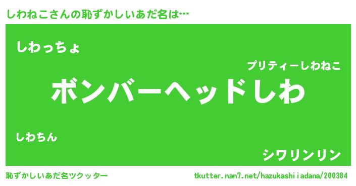 | ヒーロー風カッコイイあだ名 | 『愛の使者しわねこ』『仮面シワダー』 |