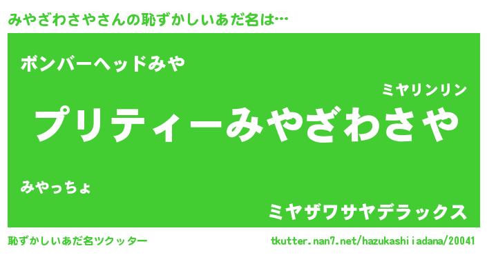 | ヒーロー風カッコイイあだ名 | 『スーパーミヤザワサヤ』『仮面ミヤダー』 |