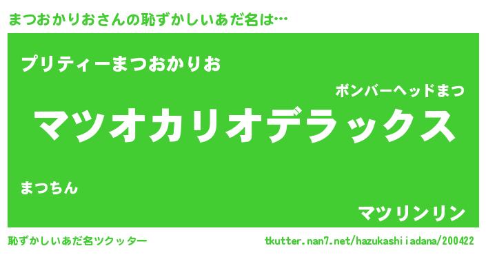 | 男性向けラノベタイトル風あだ名 | 『まつおかりおに滅ぼされるだけの簡単なお仕事です』 |