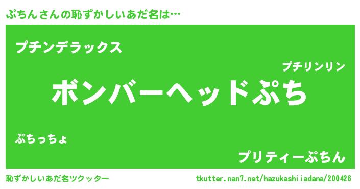 | ヒーロー風カッコイイあだ名 | 『愛の使者ぷちん』『サイバー戦士プチン』 |