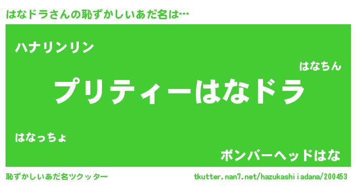 | 意味不明あだ名 | 『ペロリンはなドラ』『永久保存はなドラ』 |